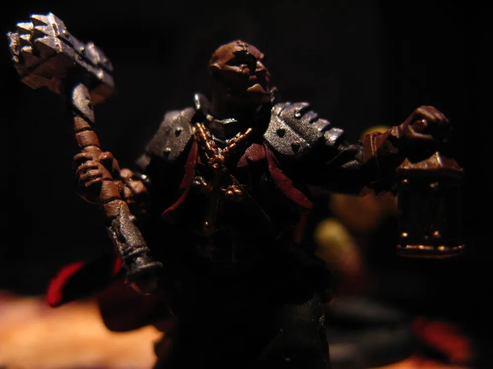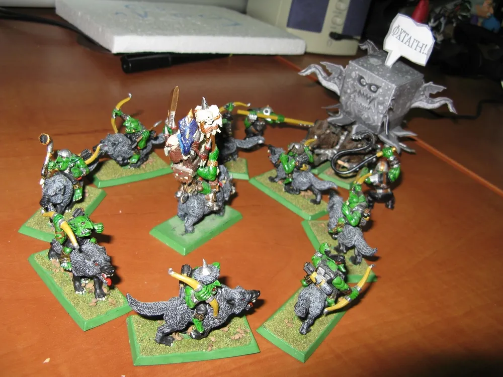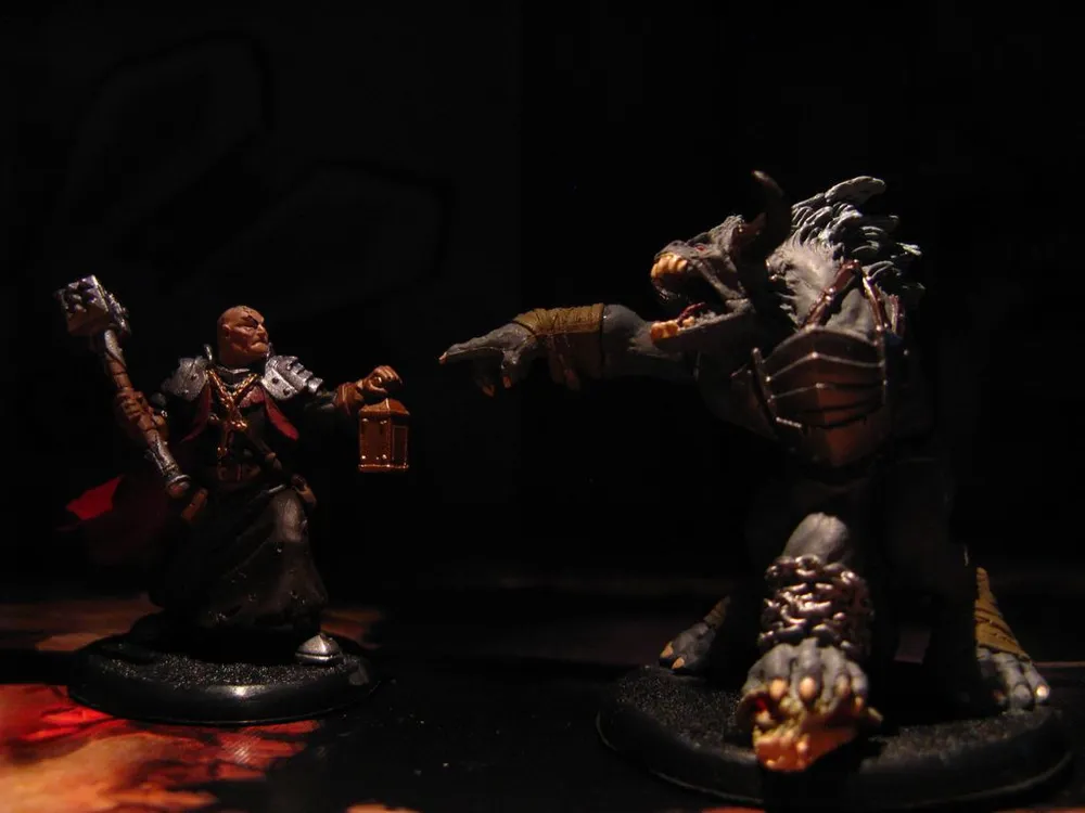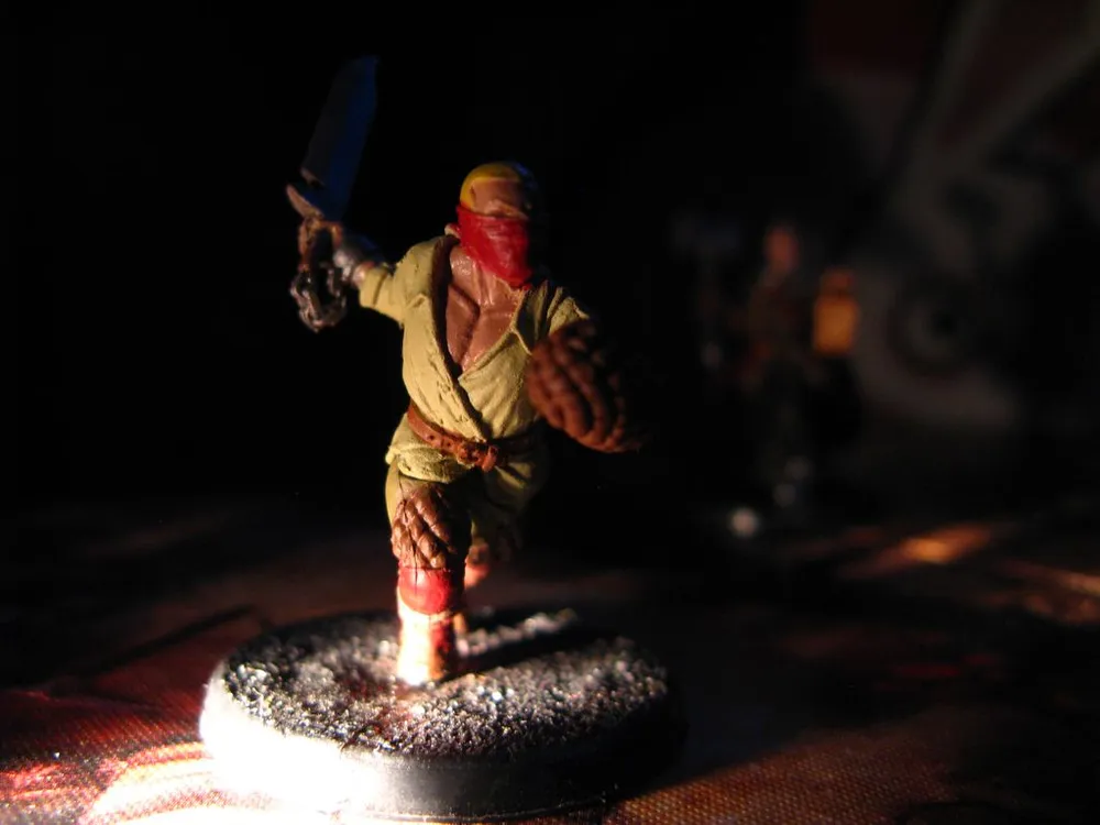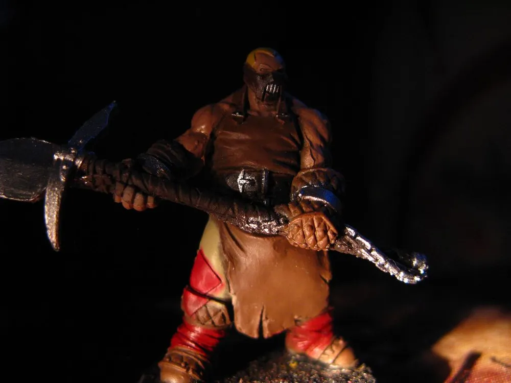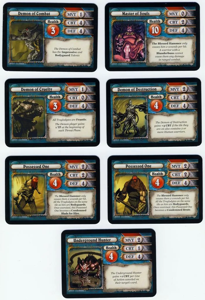 Демон тоже хорош, особенно указующая поза. К минькам есть только одна придирка - видны производственные швы. Но не так что бы очень. Так же к каждому воину-человеку прилагается карта статистики с подставкой.