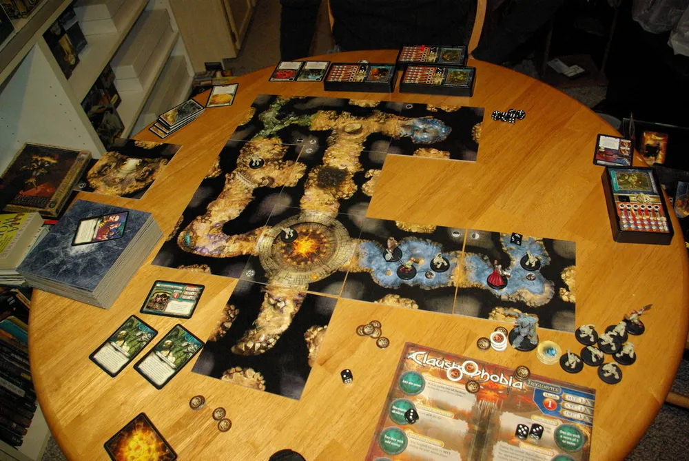 Игровой процесс Клаустрофобии довольно легок и прост в освоении. Самое главное во время игры: молиться Богу Рандому за выпадение нужного значения на кубиках. Однако подобная система сразу же становится привлекательной, если игроки обладают хорошим воображением. Например: есть карта событий для демонов "Троглодит-камикадзе". Однако её эффект так же срабатывает по кубикам. И если удар не прошел, то рисуется следующая картина: троглодит разбегается, с рыком прыгает на человеческого война, но не расчитав пролетает мимо и с жутким воем размазывается по стене. И если у вас воображение способно нарисовать такое, то и все остальные результаты будут довольно увлекательными, в плане атмосферности.