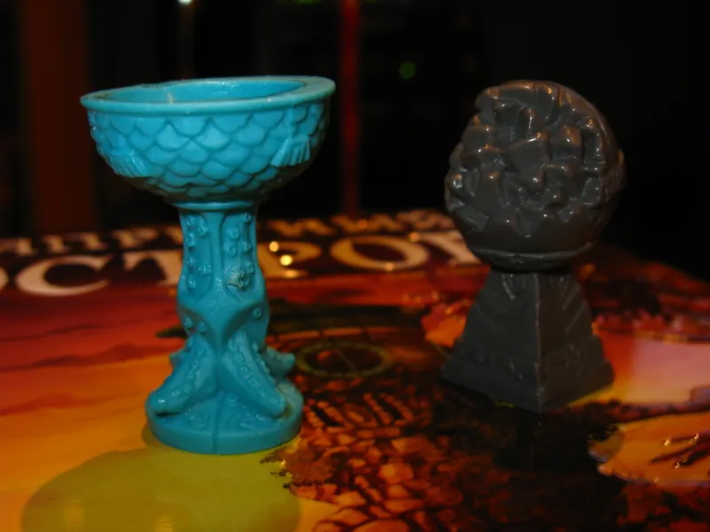 Естественно обе колоды тщательно перемешиваются и кладутся рубашками в верх. Артефакты следует поставить в доступном всем игрокам месте около игрового поля. Теперь у нас остались только фишки игроков и карты ролей - о них в следующем разделе.