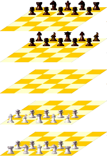 • Фигуры должны перемещаться так, чтобы при взгляде на доски сверху (в двумерной проекции) они ходили по правилам обычных шахмат