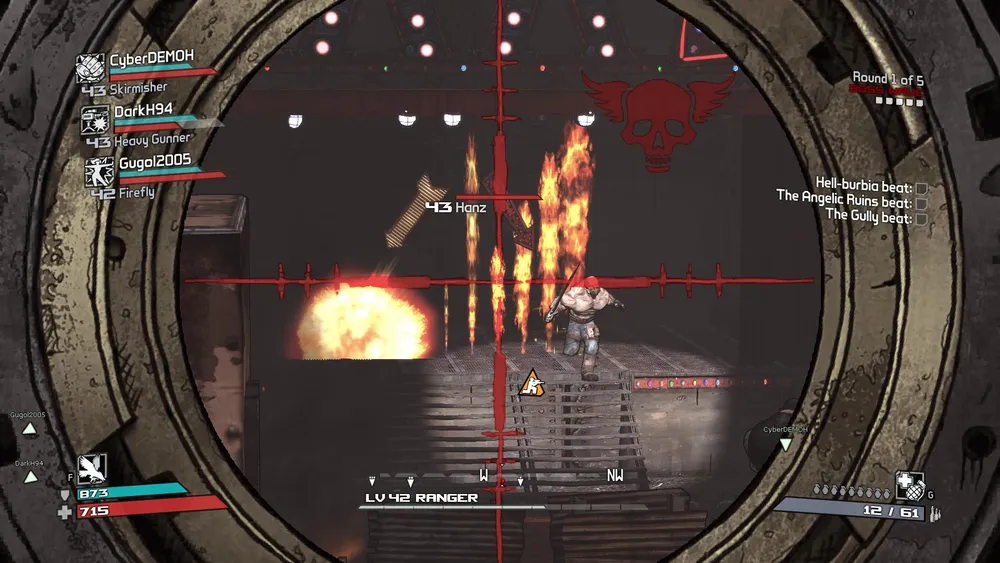 Но сначала все сражения выглядят довольно бодренько. Много противников, попытки играть командой. Мы даже Modern Warfare 2 вспомнили. Позиции начали занимать. Типа, берсерк и сирена впереди, снайпер сидит где-нибудь на крыше, солдат бегает сзади и всем дарит пули добра (лечит). Причем сперва ничего не получается, потом мы уже начали понимать, как действует враг, как можно помогать друг другу и что надо предпринимать для победы. Я не слукавлю, если скажу, что Мокси нас многому научила. Если бы мы потом продолжили игру на обычных локациях, то бились бы уже гораздо сыграннее.