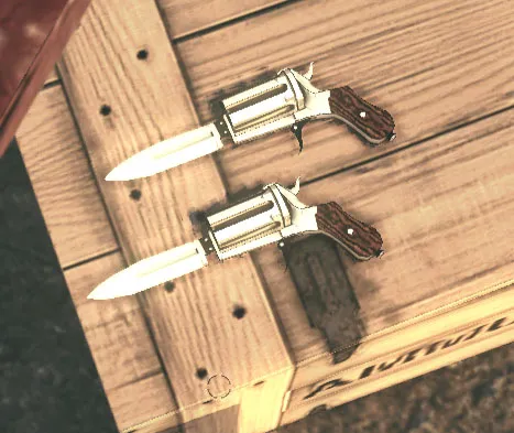 Peppergun — какая-то непонятная фигня в виде ножа и половинки револьвера. Стреляет такой же неведомой непонятной фигней. Похоже на мини-дробовик, но пользует пистолетные патроны. Дальность стрельбы ни к черту, скорость перезарядки — тоже. Ножом тыкать нельзя (а может это и не нож вовсе).