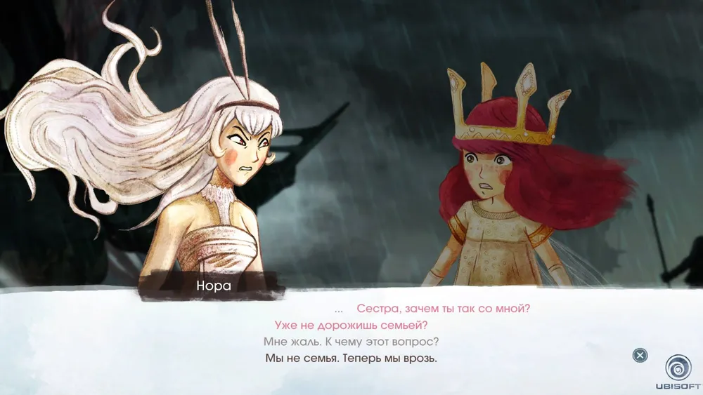 Лицевой анимации в привычном для современного геймера виде у героев нет. Тем не менее, они не лишены определенной мимики, заметнее всего проявляющейся в диалогах. В зависимости от переживаемых эмоций они могут и улыбаться, и грустить, и удивляться, и злиться, и даже плакать. В нескольких статичных изображениях художники сумели лаконично и емко передать всю гамму чувств, которые свойственно испытывать персонажам. Поскольку в игре практически нет озвучки (разве что иногда мы слышим голос рассказчицы за кадром), выражение лица помогает точно уловить и понять сиюминутное настроение говорящего. А выделенные различными цветами реплики не дают запутаться, какая из них кому принадлежит.