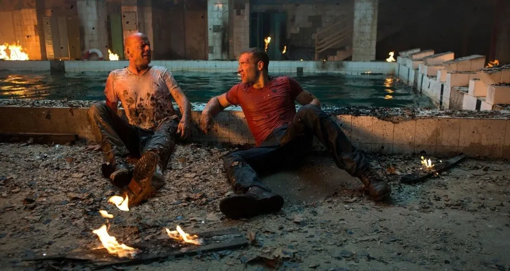 Ладно, хватит стеба, перейдем к фильму. Как старый любитель старых же боевиков, в том числе и с грозой астероидов и прекрасным певцом Брюсом Уиллисом, я с крайнем уважением отношусь к франшизе крепких орешков. Четвертая часть, попытавшаяся стать серьезным современным боевиком, была не плоха, но вселяла опасения за серию, да и староват Брюс все же уже. Но вот пятая часть...