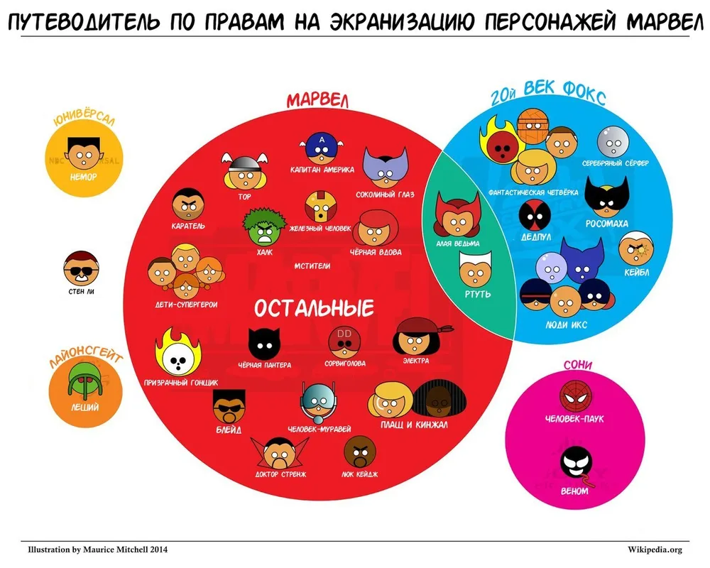 Сейчас напомню в чем дело. Права на экранизации комиксов Marvel принадлежат не только студии Marvel. Например, права на экранизацию приключений «Человека-паука» есть только у Sony Pictures, а все «Люди Икс» принадлежат студиям Fox. Вместе с правами на экранизацию, студии делят между собой всех героев этих серий. То есть, например, в кино Тор не может биться бок о бок с фантастической четверкой против объеденных сил Таноса и, допустим, Карнажа. В мультиках и комиксах – сколько угодно, в кино – никогда.