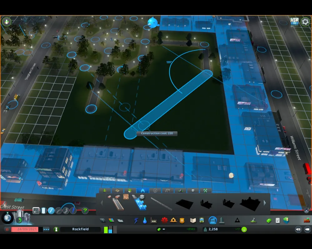 Зато возможностей по планировке просто завались. Можно проводить парковые дорожки с той же свободой, как и обычные дороги. Высаживать деревья и расставлять всякие декорации. Строить особые здания. Единственное ограничение — тип зданий должен соответствовать типу парка.