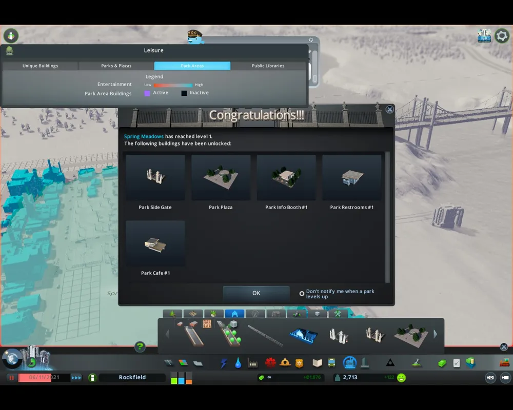 Правда, как я уже сказал, особого привлечения я так и не получил. Возможно потому что парки плохо прокачал. Да, они прокачиваются! По мере того, как через парк проходит больше посетителей, его уровень растёт и открывается всё больше доступных зданий и декораций.