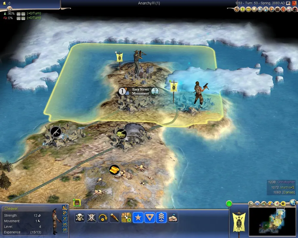 Капитолии и дипломатия: Различии в религии уже не особо важны для тех кто выжил, но имеется различии в том, какой же именно город станет столицей новой страны. Каждый из крупных центров рассылает своих адвокатов по городам и постепенно добивается того, что все выжившее объединяются под его властью. Победа доступна при распространении идеи объединения вокруг одного капитолия среди 67% населения. В отличии от религии, идеи чужого капитолия можно изгнать своим, даже в чужом городе.