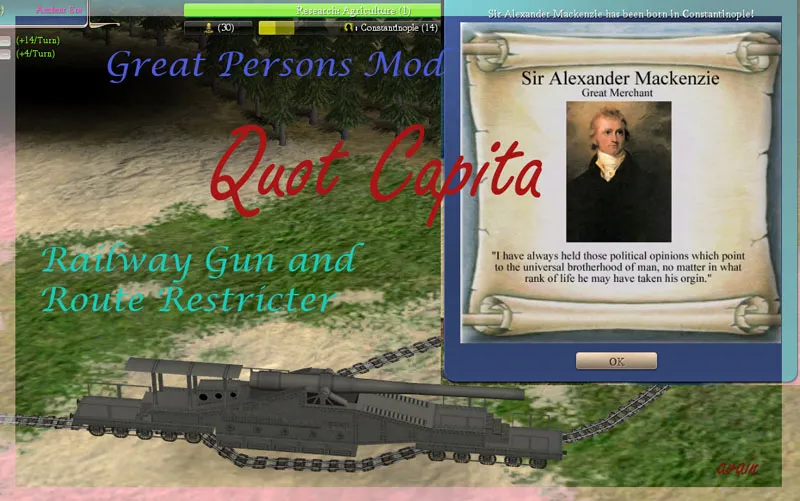 GreatPersonMod Теперь, когда в вашей империи рождается Великий человек, появляется окошко с его портретом, и цитатой.