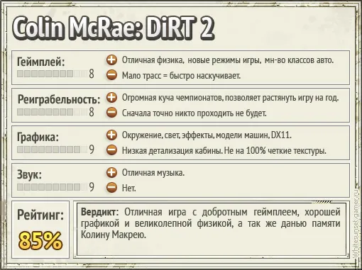 Colin McRae Rally Dirt 2, ревью