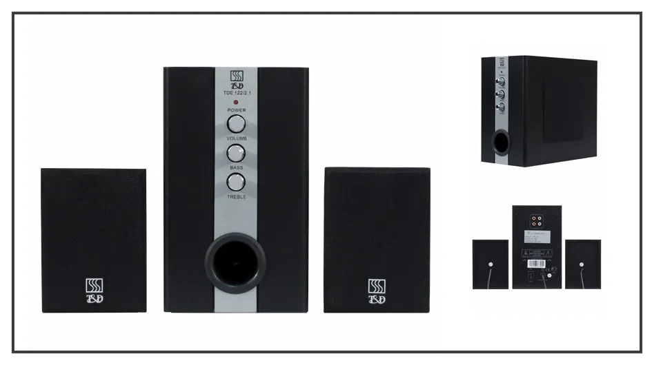 Двоих из вас, друзья, ждут вот эти стильные лаконичные колонки с сабвуфером TDE 122, которые будут удачно смотреться на любом рабочем столе. Смело включайте любимую игрушку и выставляйте те настройки, которые вам по душе!