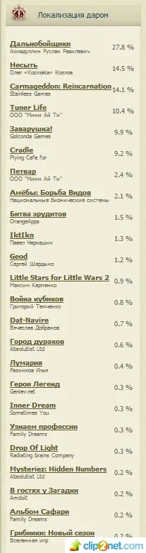 Отдельно хочется отметить работу по продвижению своей игры, создателя «Несыти» - Олега Козлова. Его небольшой, но очень симпатичный проект занял второе место, успешно выдержав конкуренцию с социальными играми. Искренне желаю удачи в развитии и дальнейшем продвижении игры!