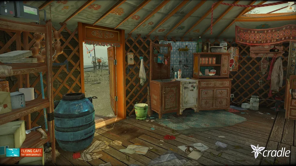 — Да, всё из того, что вы перечислили, есть в игре. Всё это скрыто за умиротворённой картинкой. Безмятежность, которая вызывает у многих ассоциации с патриархальной «Ургой — территорией любви» Михалкова, с обязательными штампами «мудрость веков», «связь поколений», «отец и сын» с развитием сюжета отодвигается на дальний план и теряет свою значимость. Проявляется социальная история, в которой мы вовсе не интересуемся «мудростью веков», мы фокусируемся на отношениях «взрослый человек — взрослый человек». Cradle — беспокойная и актуальная история, а вовсе не сказка о любви, какой может показаться на первый взгляд.
