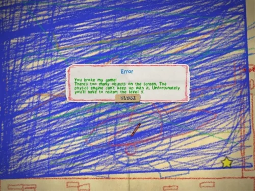 В Crayon Physics Deluxe, если вы нарисуете слишком много объектов на экране, появится сообщение "You broke my game!". Физический движок не справляется, и уровень придется перезапустить.