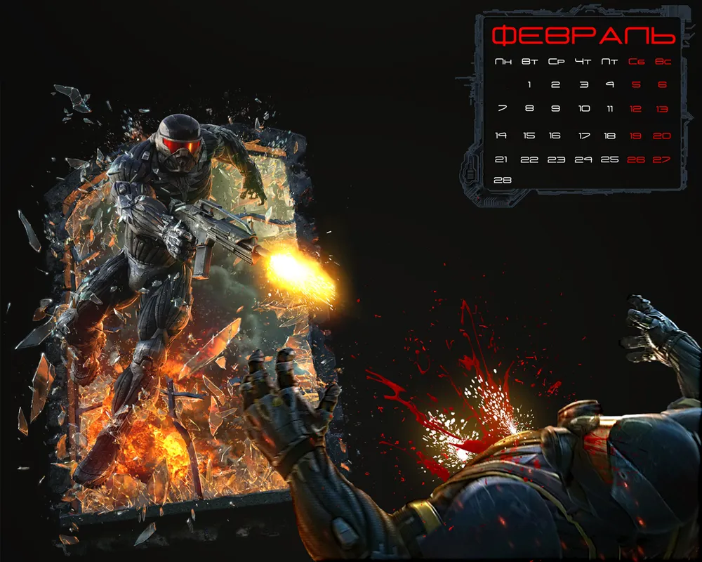 Я уже выкладывал календарь на 2011 год в стилистике Crysis 2 , теперь же предлагаю вам украсить свой рабочий стол ежемесячными обоями. На январь смысла делать не было, так как идея подоспела только сейчас, а февраль же весь еще впереди. Обои, по моему скромному мнению, вышли отменными, хотя, возможно, и не под каждый вкус. Все они узкоформатные, но с различными разрешениями, ну а если вы не найдете формата, подходящего именно вам - оставляйте заявки в комментариях.