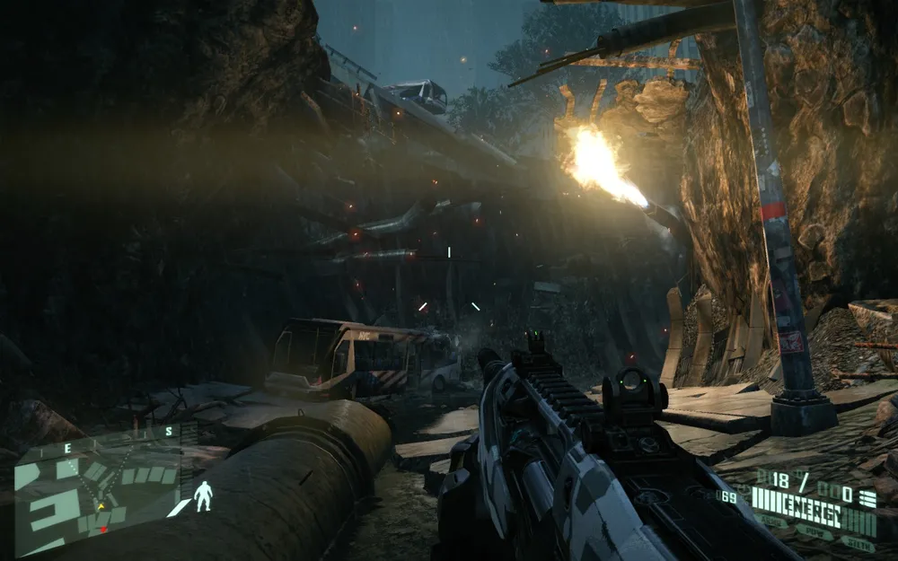 Следующая «приятная» неожиданность — линейность. Нет-нет, конечно, вся линейка игр Crysis линейна. Но, как ни странно, те самые ненавистные пальмы худо-бедно, но всё-таки это маскировали по принципу «да всё равно там нет ничего интересного».
