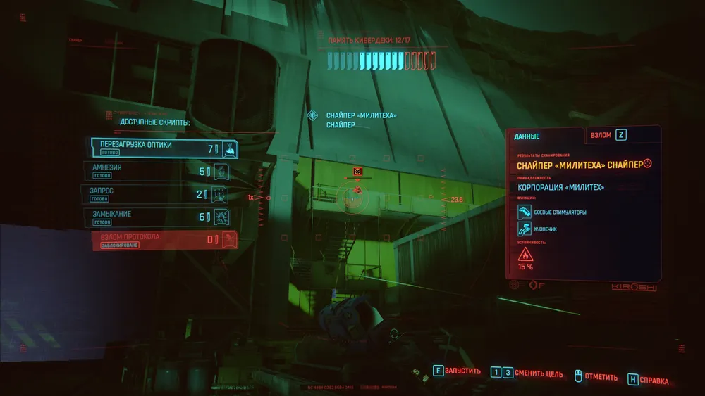 Кибердека работает совсем как магия в фэнтезийных RPG. Только вместо «маны» — затраты памяти. И ещё её можно применять не только на врагов в прямой видимости, но и наблюдая за ними через камеры. Убийство/обезвреживание скриптами даже бой не начинает — при удачной планировке локаций можно вообще всех перебить из стелса не сходя с места. Также вам в помощь активация всякой техники, которая заставляет врагов сойти с места, проверить что там зажужжало.