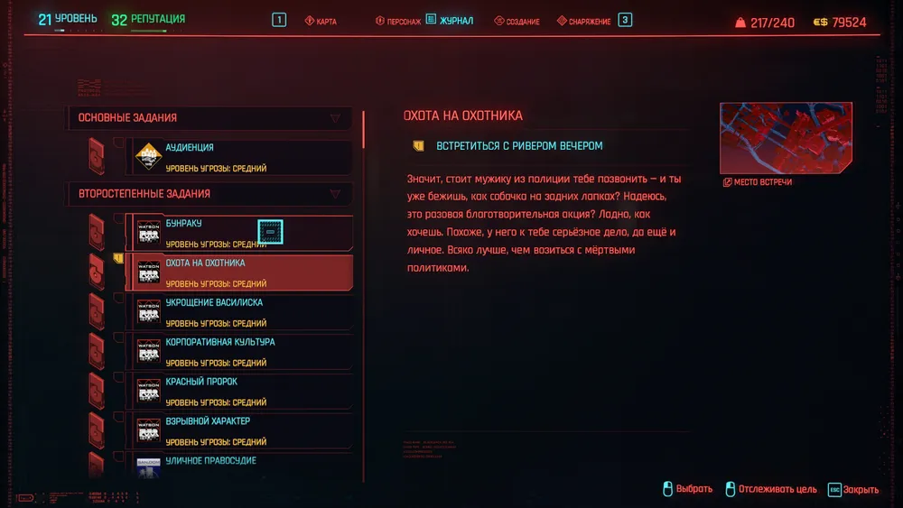 С самого начала у вас будет три ниточки — клиент, заказавший похищение биочипа, создатель биочипа (который по какой-то причине всё ещё тусуется в Найт Сити) и собственно «Арасака» (точнее бывший сотрудник корпорации, который ищет способ отомстить <спойлер> за <спойлер>). Кто-то из них должен знать, как обезвредить чип, или знать тех кто знает.