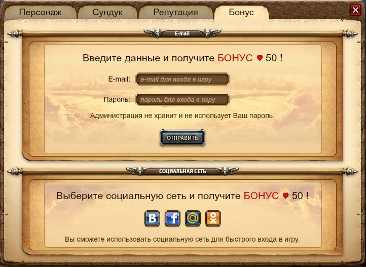 Кроме того, подтверждение почты и выбор соцсети добавят вашему персонажу по 50 единиц жизни, что никогда лишним не будет, ведь не известно с каким противником сведет вас судьба на бранном поле.