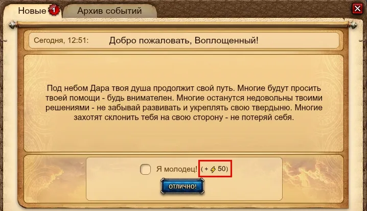 Помимо этого, если подтвердить почту и выбрать соцсеть, то за каждое событие ваш персонаж будет получать в награду по 50 энергии, а событий много, вспотеешь, пока сумеешь потратить всю дарованную энергию на бои.