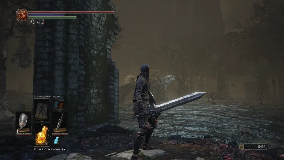 10. Меч тьмы. Как много о нем информации в Интернете! Он выпадает из Темного духа, который сидит за изначально запертой дверью в Высокой стене Лотрика, там же, где и Мимик. Чтобы открыть дверь, надо в Поселении Нежити найти бледный язык, и отдать его в Храме Огня Леонхарду Безымянный Палец, после чего мы получим ключ и сможем попытаться выбить из Темного духа меч тьмы. Но здесь есть сложности: 1) Темный дух – достаточно сильный противник на начальном этапе игры; 2) выпадение меча – это чистый рандом. Я убивал духа в этой локации раз 50, но меча так и не получил (выпадал части его сета и бледный язык). Зато когда я первый раз убил этого моба в локации Путь жертв – с него тут же выпал Меч Тьмы. Так что дерзайте…