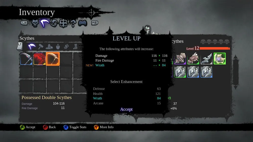 Усилия, потраченные на эти действия, окупаются с лихвой – нажатием буквально пары-тройки клавиш каждый бой превращается в феерию красок и мельтешение мечей, не сильно сложные, но до чёрта зрелищные. На первый взгляд косметические, изменения в боевой системе (вроде вынесения добивающих ударов в категорию «если случай подвернётся») оказались более чем жизнеспособными, и результат не скатывается в однообразие первого Darksiders. Кроме того, в бою открывается неплохой простор для поиска самых удачных комбинаций ударов, различных в зависимости от экипированного оружия, так что заняться есть чем.