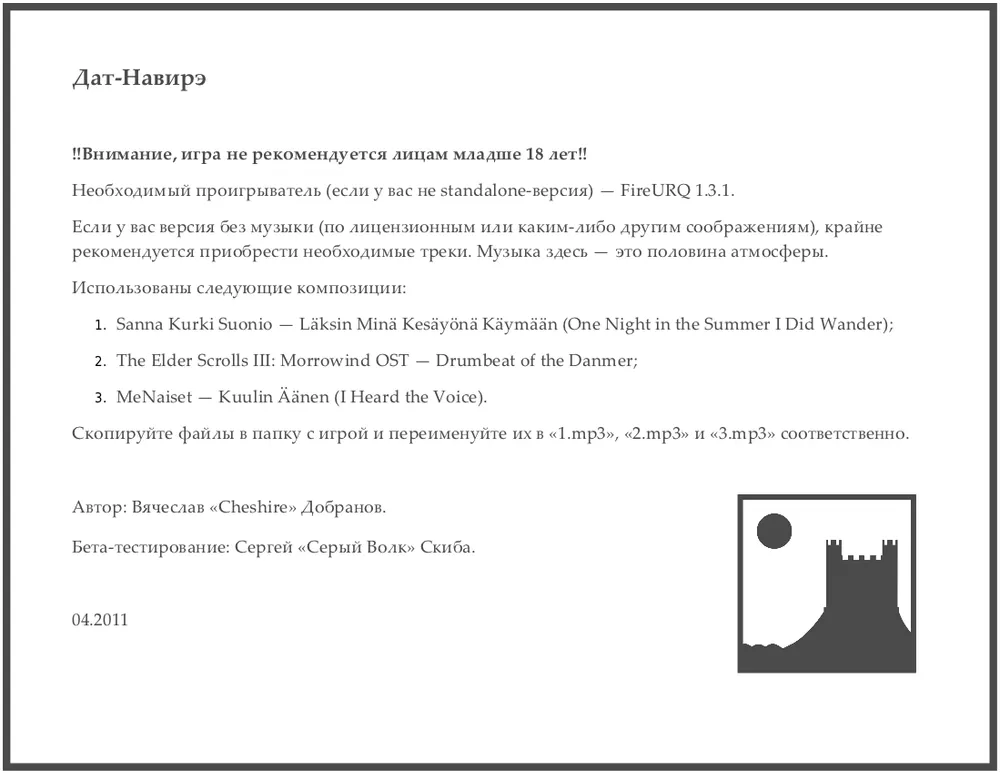 Файл Readme к первой версии игры Dat-Navire содержит важную информацию о проекте.