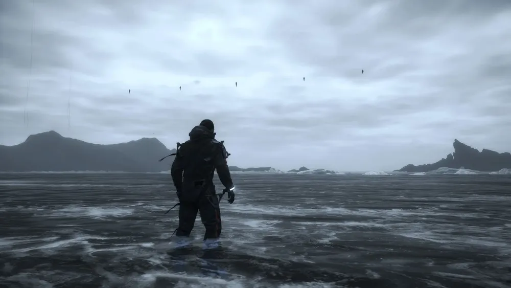 Местный постапокалипсис отличается от того, например, что нам показали в Fallout. Если в мире, в котором война никогда не меняется, мы бродили по выезженной ядерными ударами пустоши, утыканной всюду остатками цивилизации и поселениями новых жителей, то в мире Death Stranding природа властвует вместо человека. Здесь показан живописный постапокалипсис — мир где нечего делать без фотоаппарата. Когда спускаешься по большому зеленому холму вниз, обходя торчащие камни, видишь далеко в тумане мелькающий город — твое место назначения, вдруг включается мелодичная и спокойная песня (каких здесь много). Ты подходишь к быстрой речке, аккуратно преодолеваешь ее, перепрыгивая с камня на камень и через несколько сотен метров поднимаешься на платформу поселения. Оглядываешься назад, а вдалеке виднеются пики гор. Как же хорош этот движок, как он прекрасен при работе с большими открытыми пространствами! В эти моменты ты шепчешь себе под нос: «Жду не дождусь, когда на ПК выйдет Horizon: Zero Dawn».