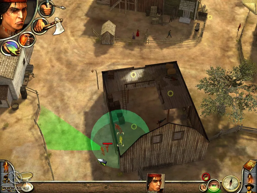 Скриншоты из игры Desperados 2: Cooper's Revenge, показывающие различные моменты и элементы игрового процесса.