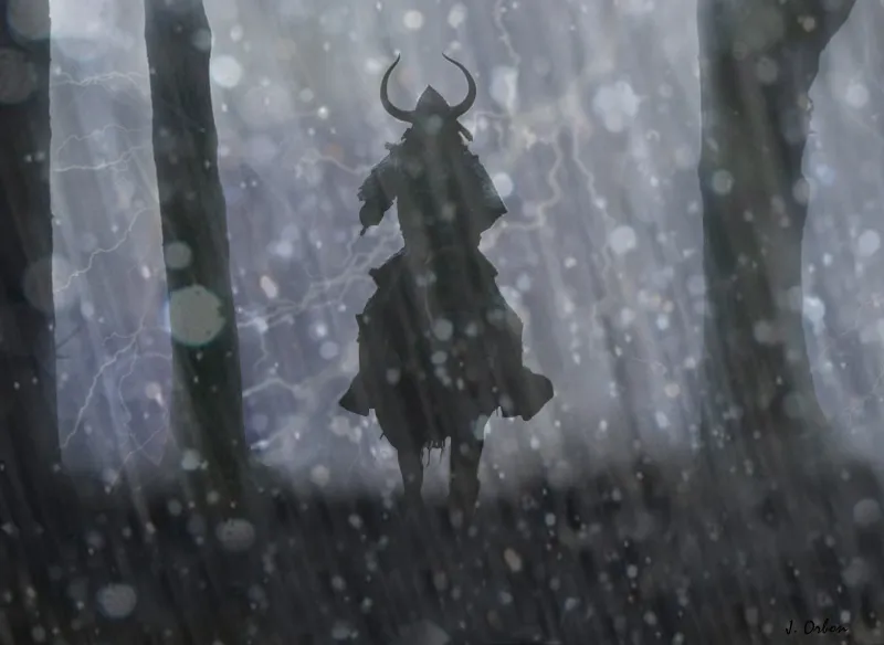 Моя катана на готове. И я всматриваюсь в роковую тьму бури. Словно тысячи черных мывшей летящих прямо на меня, словно сотни ворон смотрящих на меня буря начала движение и я услышал грохот и рокот словно взрыв мощной ракеты.