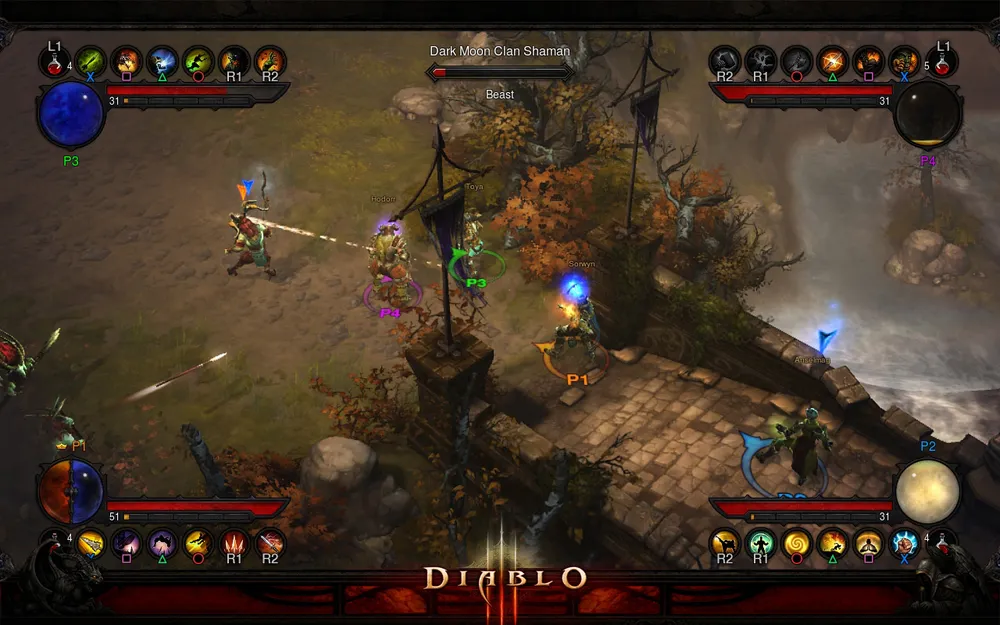Разумеется, что в игре, где все вращается вокруг крутизны героя и его шмота, дроп играет одну из ключевых ролей. По первым впечатлениям (!) от демки с этим делом в консольной версии все хорошо: она демонстрирует классическую систему дропа а-ля Diablo II. Это означает, что дроп для всех героев, бегающих с одной версии в одном экране, общий, однако его жирнота ощутимо улучшена. На базовом СМ на кошмаре из паков регулярно вываливаются желтые вещи, а примерно на середине забега монахом (я прошла демку хантером, монком и частично визом) мне упала легендарка (внимание!) на этого самого монаха (а именно дайбошка, которой я сразу же вооружилась). Учитывая мою тотальную патологическую непруху в PC-версии, это было чем-то сродни чуду. 10 минут игры за монка - и на тебе легендарку. Это без МФ, парагона и СМ, кстати говоря. Если они будут так же сыпаться в итоговой консольной версии, я собираю чемоданы и переезжаю фармить шмот на PS3. О_О