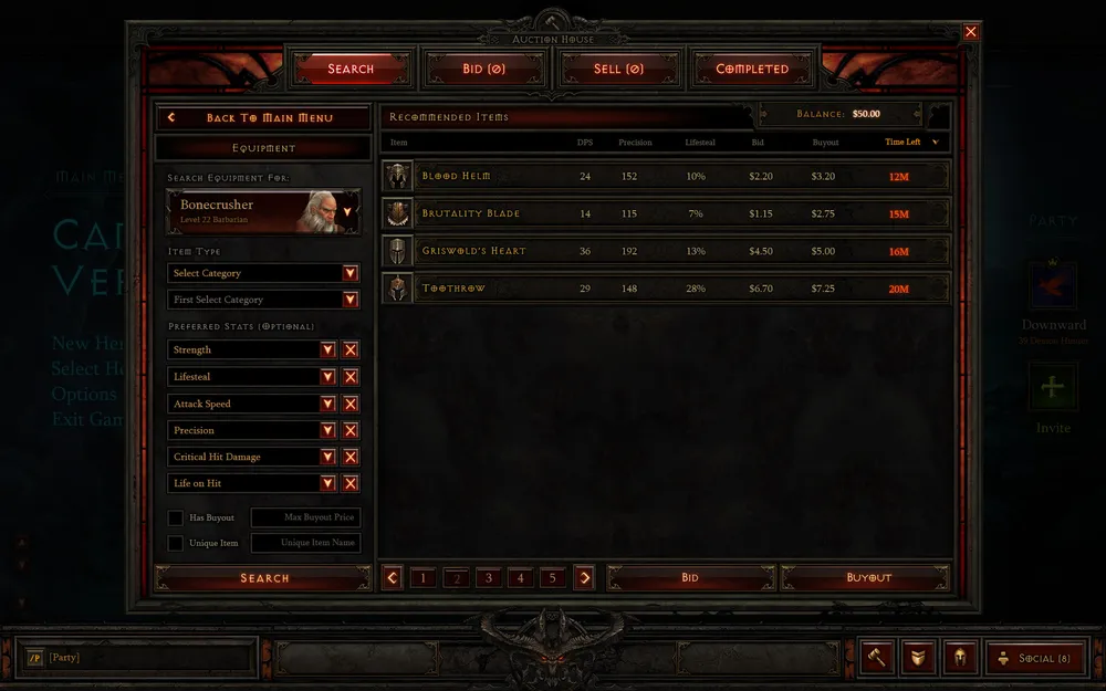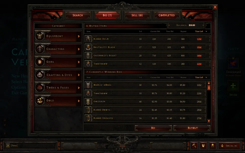 Интерфейс аукциона (да-да, в D3 будет аукцион)