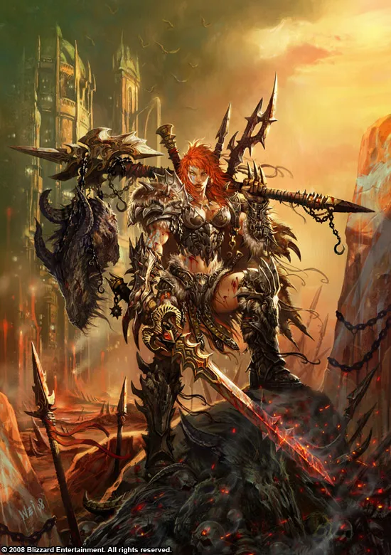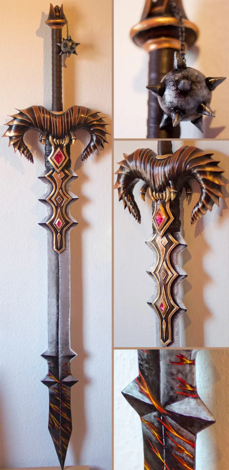 Фух, что за неделька! Мой костюм сделан, но теперь пришло время для оружия. Первоначальный вариант был такой: сделать большой топор, а также меч как в арт работе Вэя Вонга (арт в начале поста). Я хотела создать два вида оружия, но получилось одно т.к. оставалась неделя и мне пришлось немного поторопиться. В итоге потребовалось три дня, чтобы сделать меч и нанести базовые цвета. Бенни также требовалось три дня для нанесения финальных штрихов. В итоге: получился только один меч.