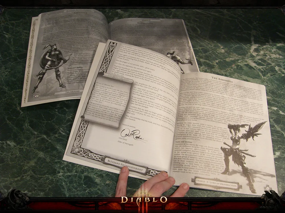 Я часто натыкаюсь на различные споры о том, относится ли серия Diablo к ролевым играм. Правильный ответ: относится, еще как! Видимо, специально для сомневающихся компания Blizzard вложила в коллекционку полноценную настольную ролевку. Для чайников: настоящие приключенцы придумывают реплики персонажей из головы, ходят с помощью фишек и кубиков и периодически пинают мастера игры, который делает им всякие подлянки. Они ругаются не с компьютером, а друг с другом и рулбуками, а все изменения, коснувшиеся их героев, вносят в листки персонажей вот этими самыми ручками.
