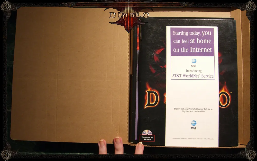 Для меня серия Diablo началась именно с первой части игры, и я искренне сочувствую всем тем, кто познакомился с ней с двушки или познакомится с трешки. Господа, сказать, что вы многое упустили - не сказать ровным счетом ничего. Эта коробочка сделала историю, открыла новые горизонты развивающемуся жанру, без которого представить современную гейм-индустрию попросту не получится. Если бы в мире компьютерных игр было что-то вроде Грааля, я бы наверно сказала, что эта коробочка - определенно кусочек этого Грааля. Я не могу не нести эту сентиментальную ерунду, потому что тогда, в 1997 году, когда я только начинала играть в игры, эта коробочка изменила мое о них представление раз и навсегда. Она же толкнула играть дальше, пройти вторую часть, прийти на форумы и, в конечном счете, сюда. Без нее все было бы по-другому. Но тогда, 13 лет назад, у меня ее не было, был только игровой диск. А сейчас - вот она, лежит, темнея, на моем рабочем столе, такая родная, заочно любимая и восхитительно старая. Diablo..