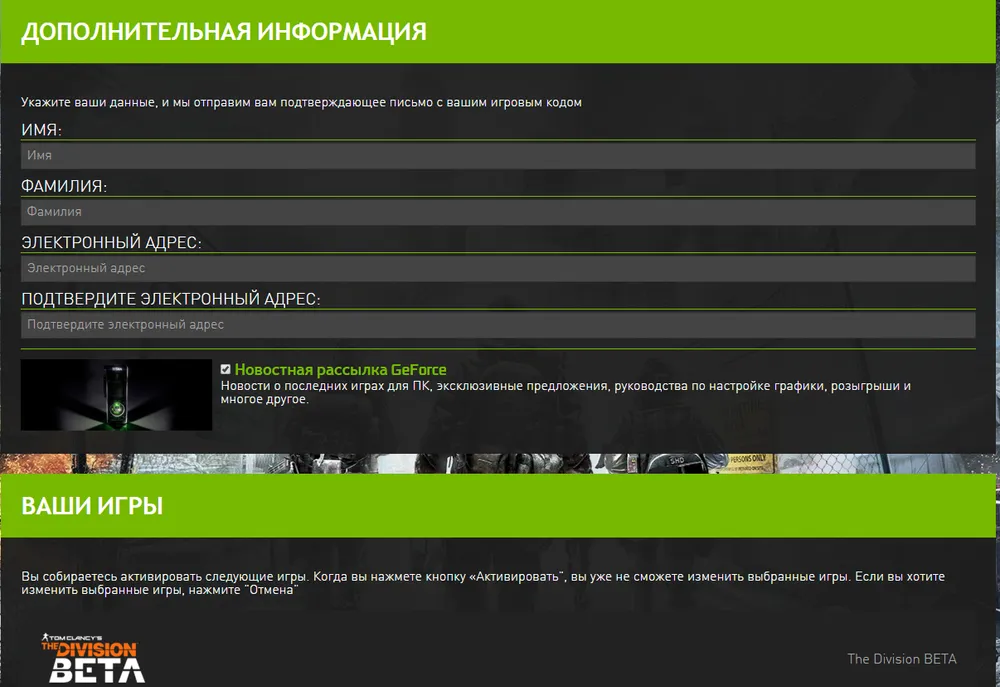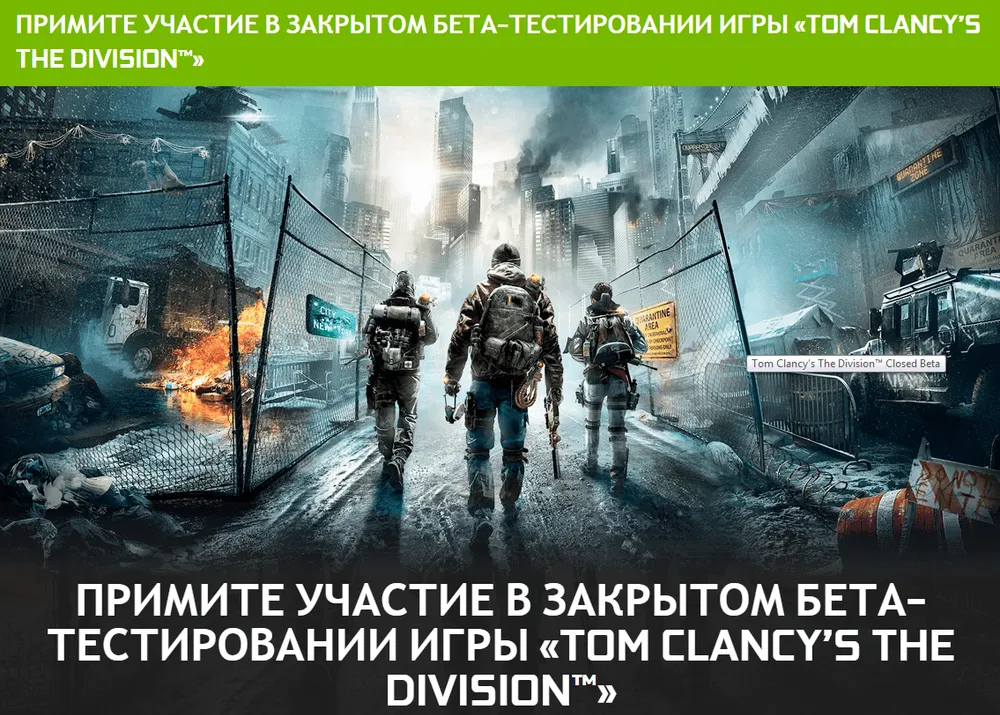 NVIDIA® И UBISOFT® ПРОВОДЯТ РОЗЫГРЫШ КЛЮЧЕЙ ДЛЯ ДОСТУПА К БЕТА-ТЕСТИРОВАНИЮ ИГРЫ «TOM CLANCY’S THE DIVISION™Название игры...»!