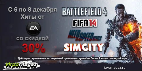 Рады сообщить о новой акции на нашем портале! Скидка 30% на игры от Electronic Arts.