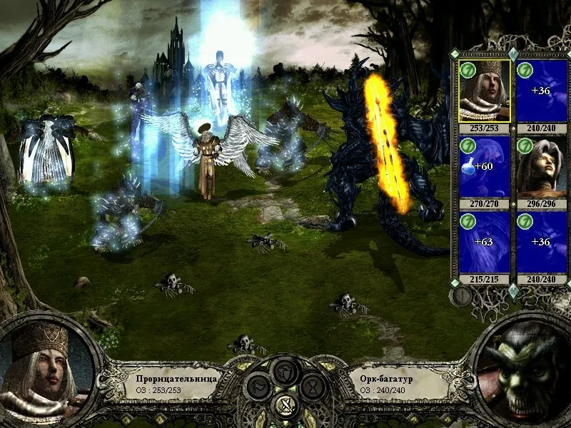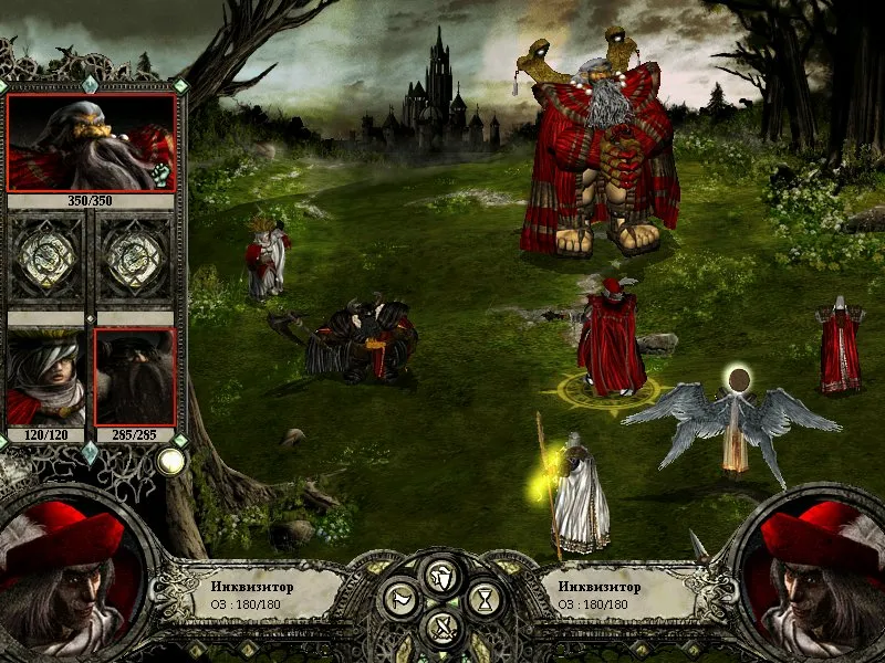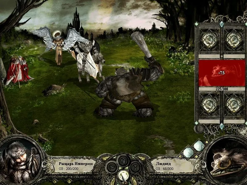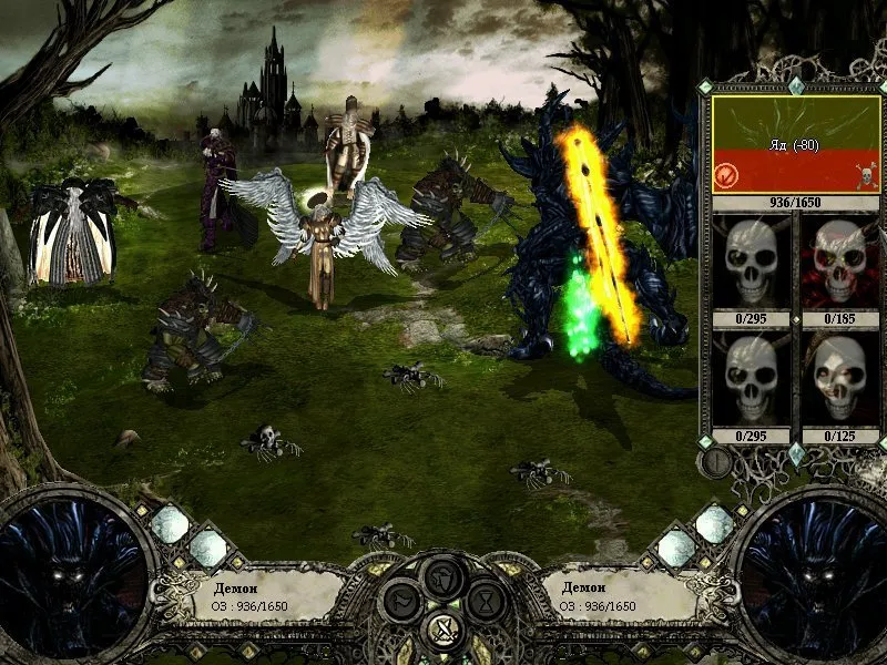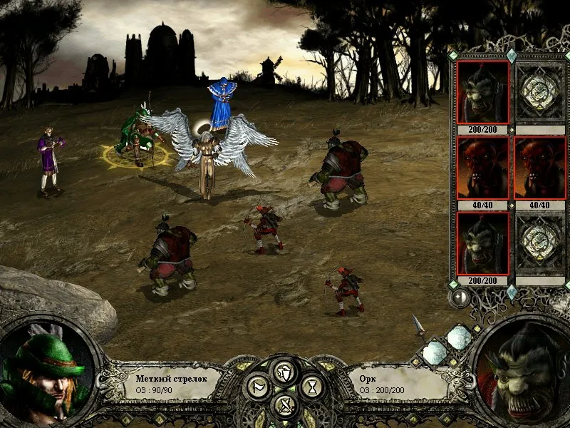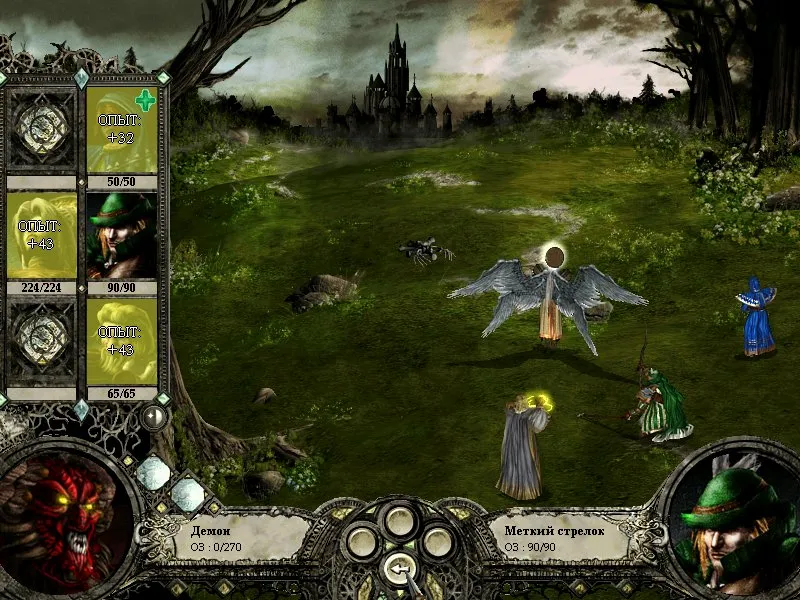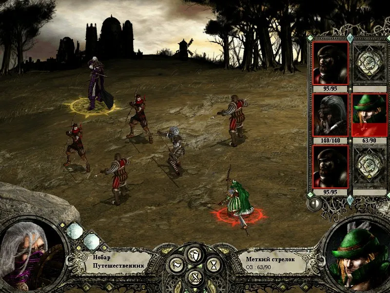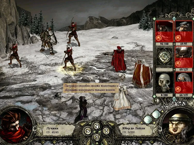 Остатки баронского отряда (кроме инквизитора!) также добиваются магией и лучниками. Теперь, когда в отряде барона остался один полуживой боец, он не сможет атаковать, как не сможет и воскресить Юбера де Лейли.