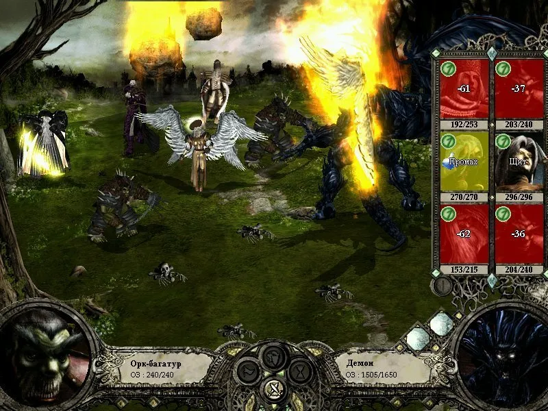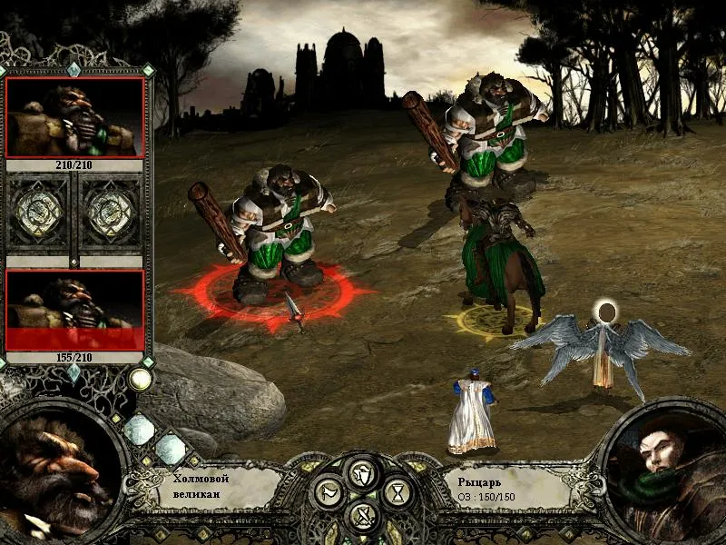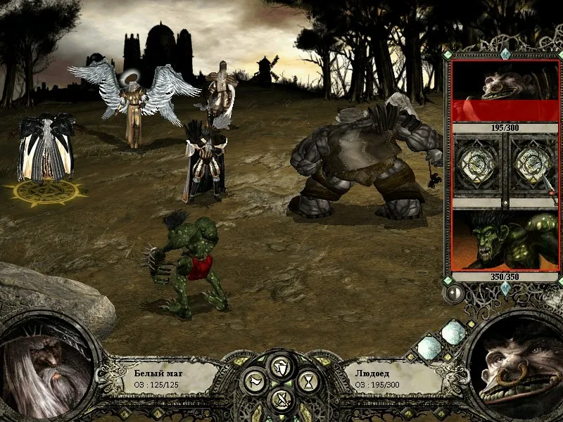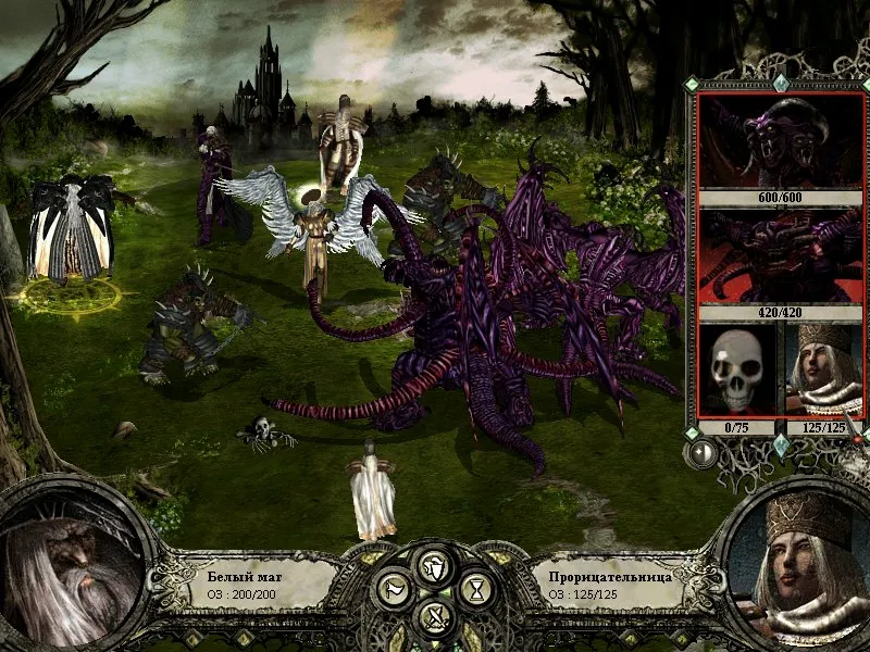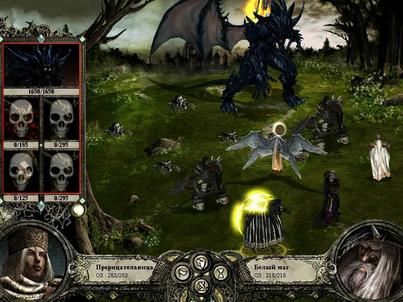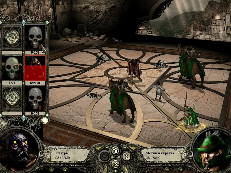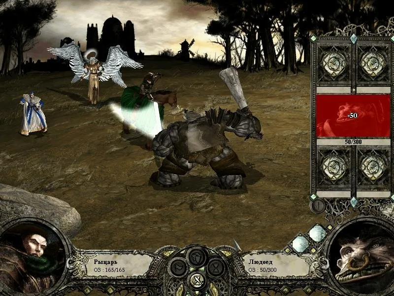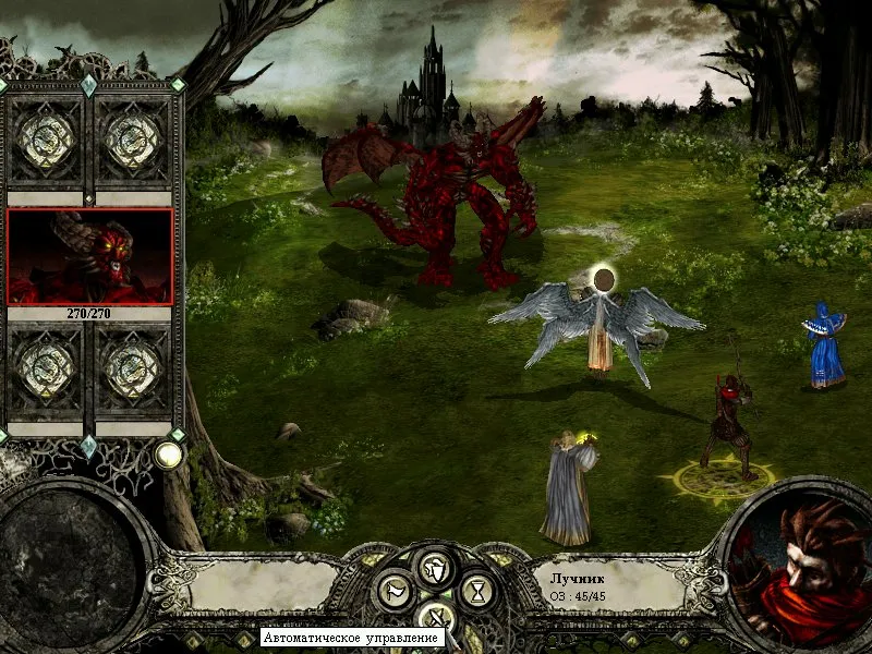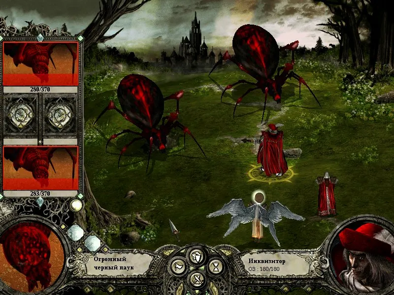 Остатки баронского отряда (кроме инквизитора!) также добиваются магией и лучниками. Теперь, когда в отряде барона остался один полуживой боец, он не сможет атаковать, как не сможет и воскресить Юбера де Лейли.