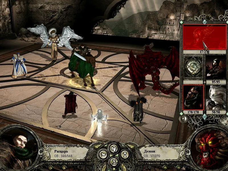 Почти наверняка среди вражеских отрядов окажется один-два «ударных», с очень сильным составом; вряд ли нашей паре удастся их победить. Обязательно учитывайте возможность внезапной атаки и сохраняйте игру в начале каждого дня и перед каждым боем. «Ударный» отряд врага ослабляется атакующими заклинаниями или призванными существами, после чего Архангел и рыцарь довершают разгром.