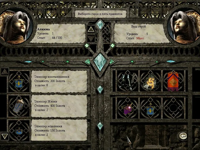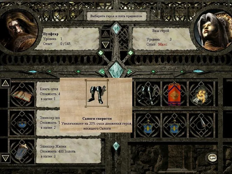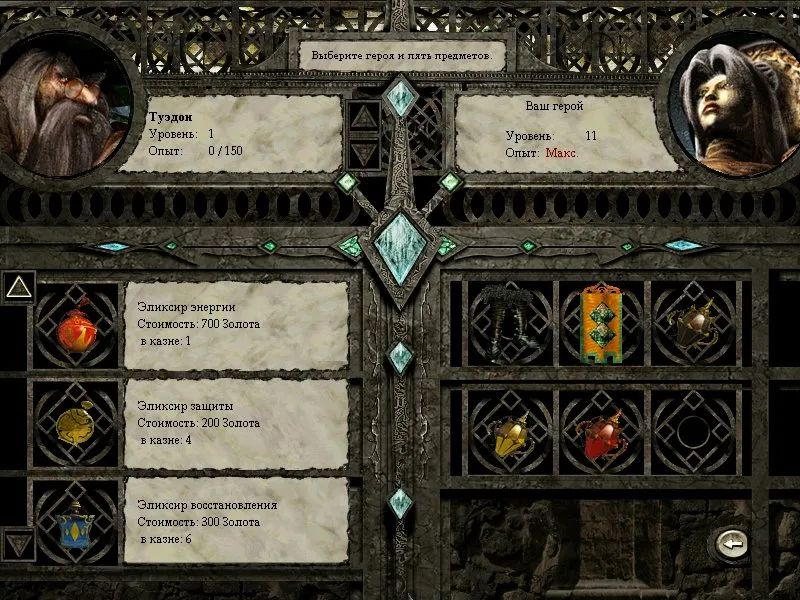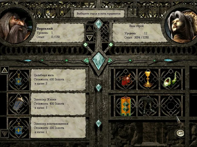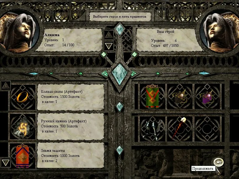Миссия выполнена! Экспортируем героя и пять предметов; я рекомендую взять с собой артефакт, знамя и сапоги, остальное – по вашему выбору.