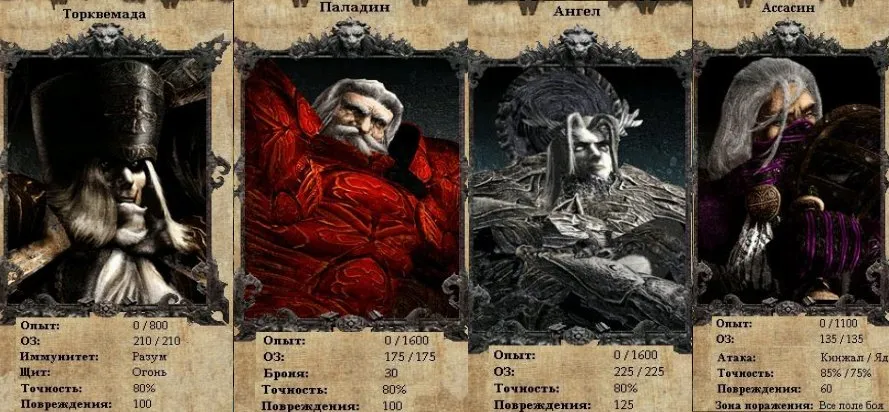 Впрочем, если подумать, становится ясно, что выгоднее брать бойца, для повышения уровня которого требуется меньше опыта: к концу миссии он превзойдёт паладина и ангела по всем показателям. Поскольку придётся иметь дело с нежитью, я предпочёл Торквемаду – из-за его способностей.