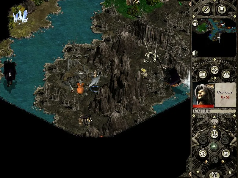 Вообще-то, непрерывный поток нежити, идущий из ущелья на северо-западе, доставляет приличные неудобства: периодически приходится бросать все дела и бежать на помощь лорду Хиллии. А тем временем враг захватывает города. Правда, шахты остаются при нас; так как у «ущельного» противника нет героев, умеющих ставить жезлы. Словом, прежде чем Архангел успела повысить недостающие уровни, вволю налеталась туда-сюда.
