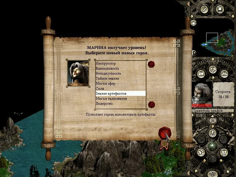 Из магических заклинаний в первую очередь выучиваем «Ускорение», затем всё, что помогает защищаться и атаковать. «Ускорение» позволяет Архангелу снять вражеский Жезл и тут же поставить на шахту свой, захватив её. (Большинство моей маны расходовалось именно на «Ускорение», чтобы защитить отряд перед серьёзной битвой, приходилось пару ночей поспать.)