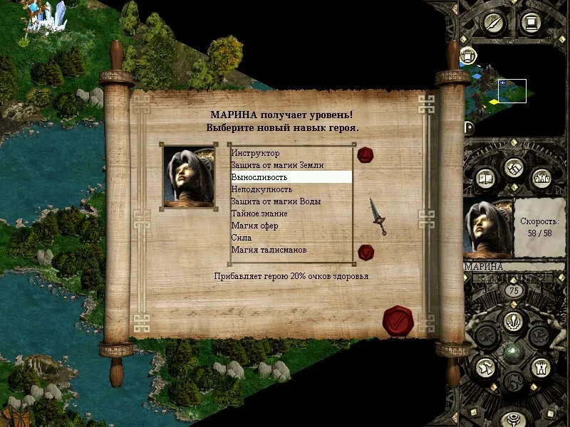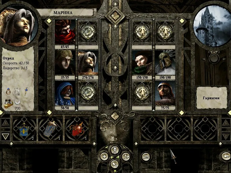 Во избежание случайностей отправляем мирного пахаря в свой замок и начинаем тренировку героев. Уровень лечения Марины теперь довольно высок, что позволяет атаковать сильных врагов, и процесс обучения идёт довольно быстро.