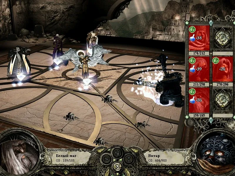 Главная задача мага заключается в уничтожении вражеских призрака и колдуна; рыцарь же в это время атакует одного из тамплиеров. Как только на поле боя останутся тамплиер и упырь, рыцарь перестаёт атаковать и начинает защищаться. Почему? Если убить второго тамплиера, упырь окажется в первом ряду и начнёт наносить удары, а его атака парализует почти во всех случаях; одинокому медику будет довольно трудно справиться с проблемой. Стоит подождать момента, пока маг разделается с «парализатором» и завершать разгром.