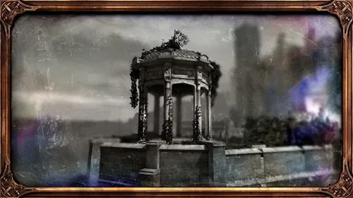 да, это та самая беседка, где была убита императрица Джессамина Колдуин в начале первого Dishonored. Она по-прежнему стоит на том же самом месте, в правой части прилегающей к башне Дануолла территории, если стоять к дворцу спиной. Вам нужно добраться до нее, избегая обнаружения ведьмами и их гончими (если вы проходите без убийств и оглушений), к счастью, в окресностях беседки никого нет. Чтобы получить трофей, "используйте" мемориальную плиту на полу беседки.