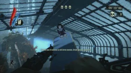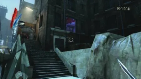 Прыжок №2: С предыдущей платформы телепортируйтесь на балки, которые летят вверх, с этих балок телепортируйтесь на последующие, пока не доберётесь до железных листов с жёлтой линией на них, активируйте и держите телепорт, Вам нужно телепортироваться с этих листов через окно разрушенного здания, по началу будет не получаться, так что, Вам придётся научиться чувствовать паузу, через которую Вы сможете пролететь аккурат через окно, ведь данная пауза длится меньше секунды.