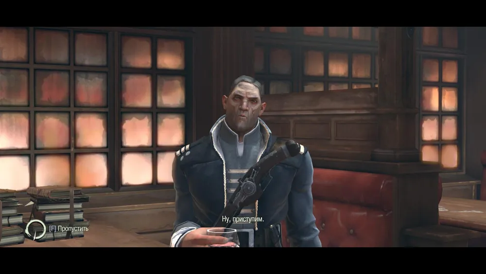 Испугавшись, Корво быстро покидает строение и бежит обратно к пристани. К счастью, охрана его не нашла.