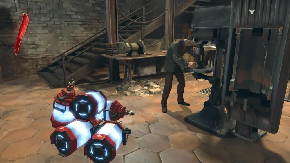 Корво крадется вдоль пристани, замечает одинокого охранника. Голос Сердца напутствует главного героя: